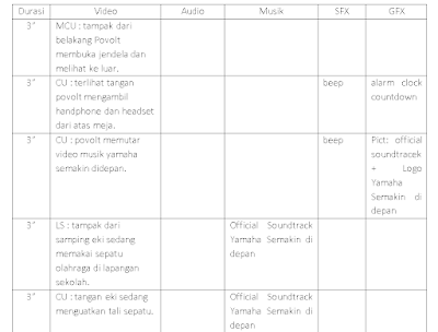 naskah ini yaitu ada kolom untuk visualnya atau videonya, dan ada kolom untuk audionya. Pada kolom video kita tulis visualnya